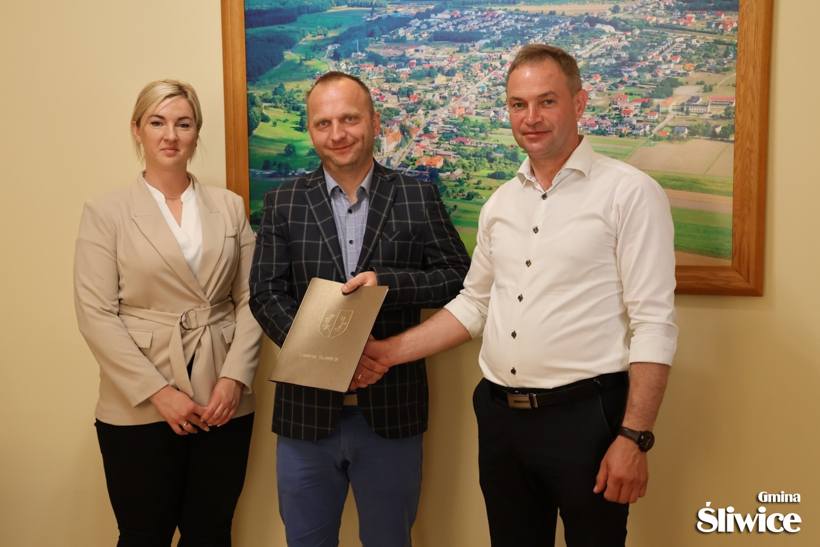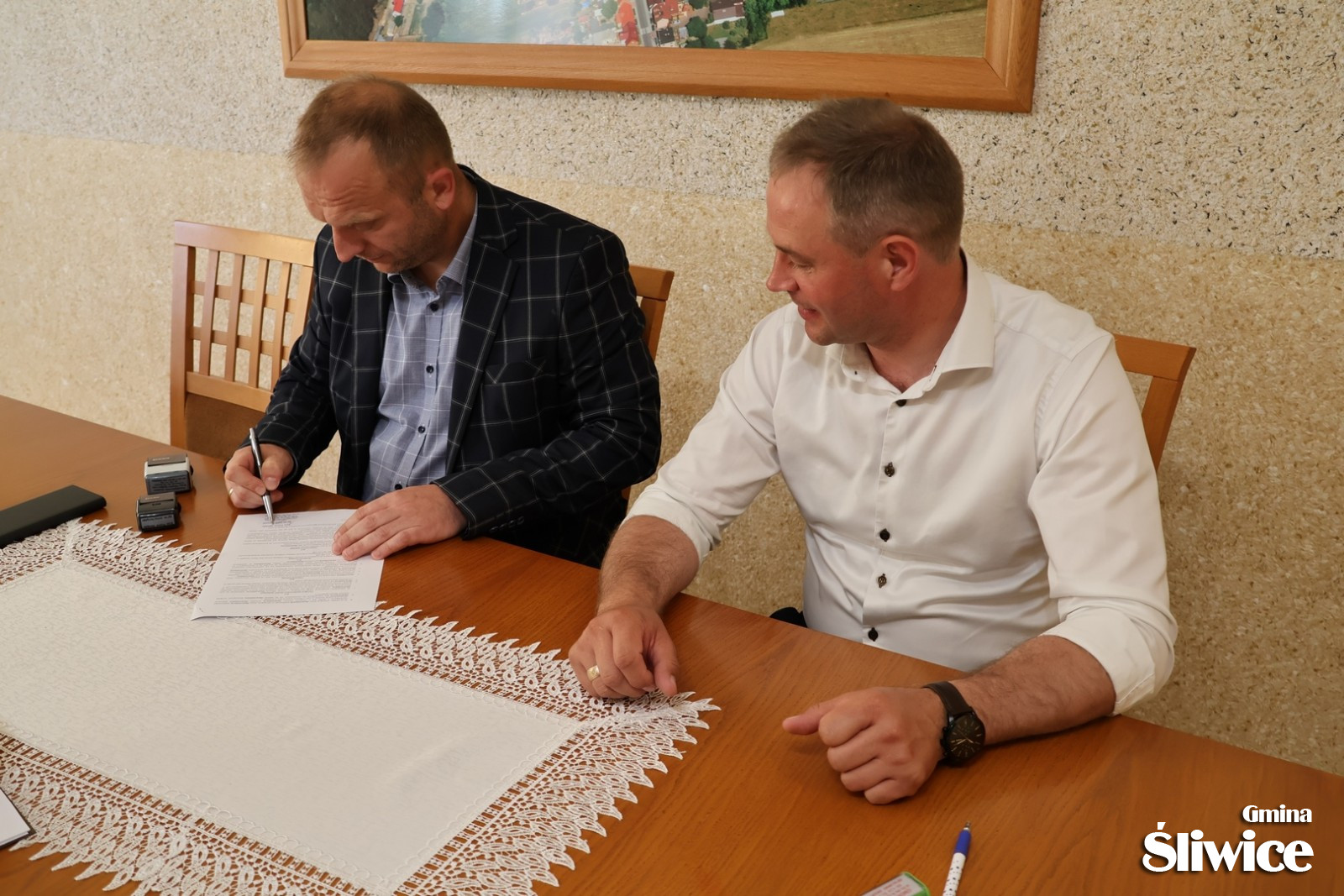 W dniu 6 czerwca br. Wójt Gminy Śliwice Daniel Kożuch podpisał umowę z Andrzejem Burczyńskim z Przedsiębiorstwa Budowy Dróg i Mostów Sp. z o.o. ze Świecia na budowę parkingu przy GOK-u w Śliwicach. Dzięki nowo nabytym przez Radę Gminy Śliwice działkom, które znajdują się nieopodal terenu Gminnego Ośrodka Kultury w Śliwicach, powstała możliwość powiększenia dotychczasowego, niewielkiego parkingu.