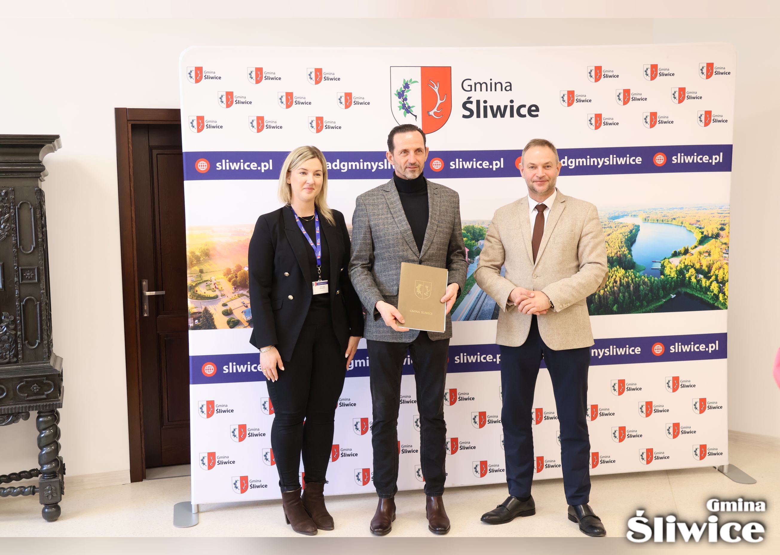 Dnia 04 marca 2026 roku Daniel Kożuch Wójt Gminy Śliwice oraz przedstawiciele organizacji pozarządowych podpisali umowy o wsparcie realizacji zadań publicznych.
