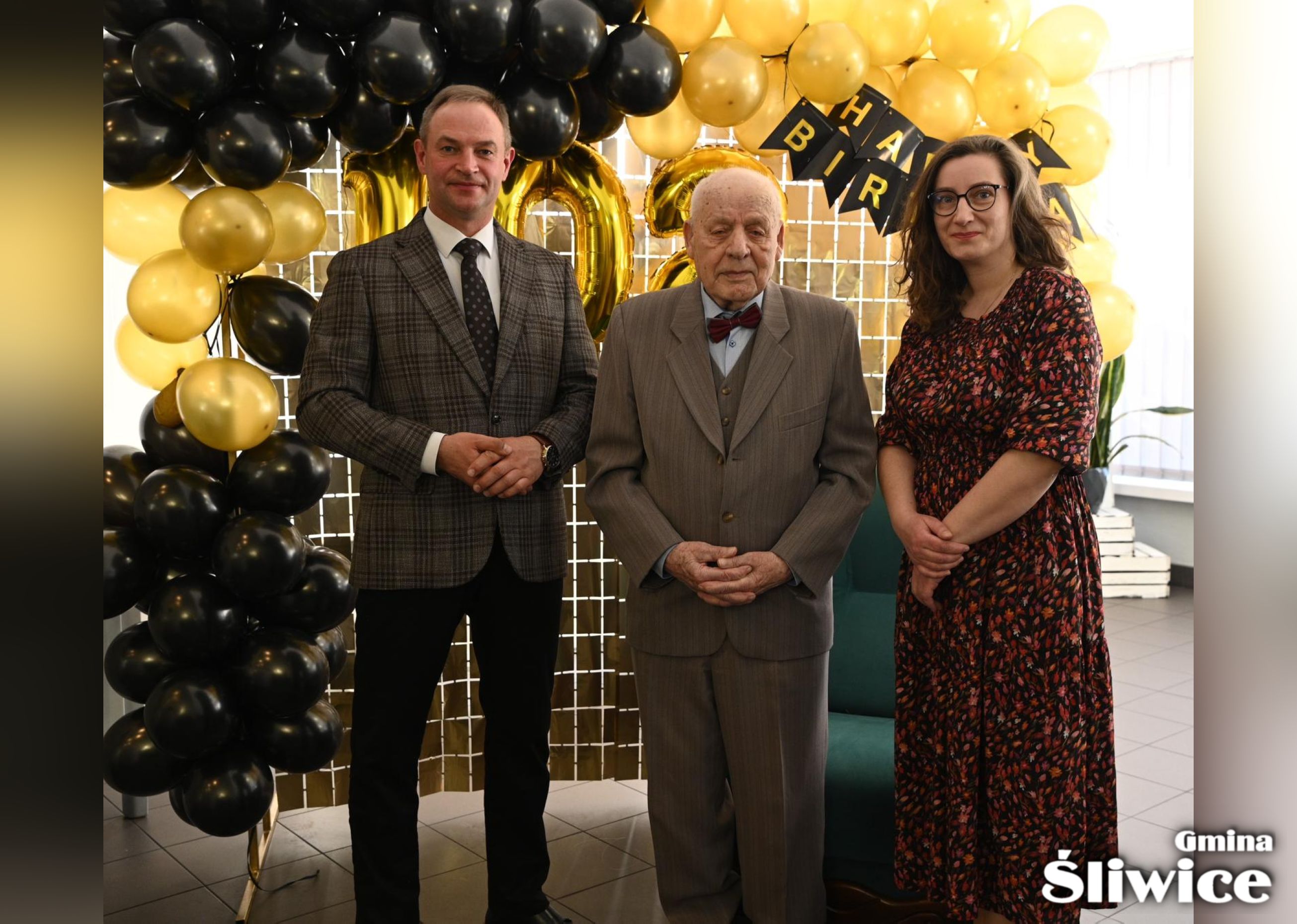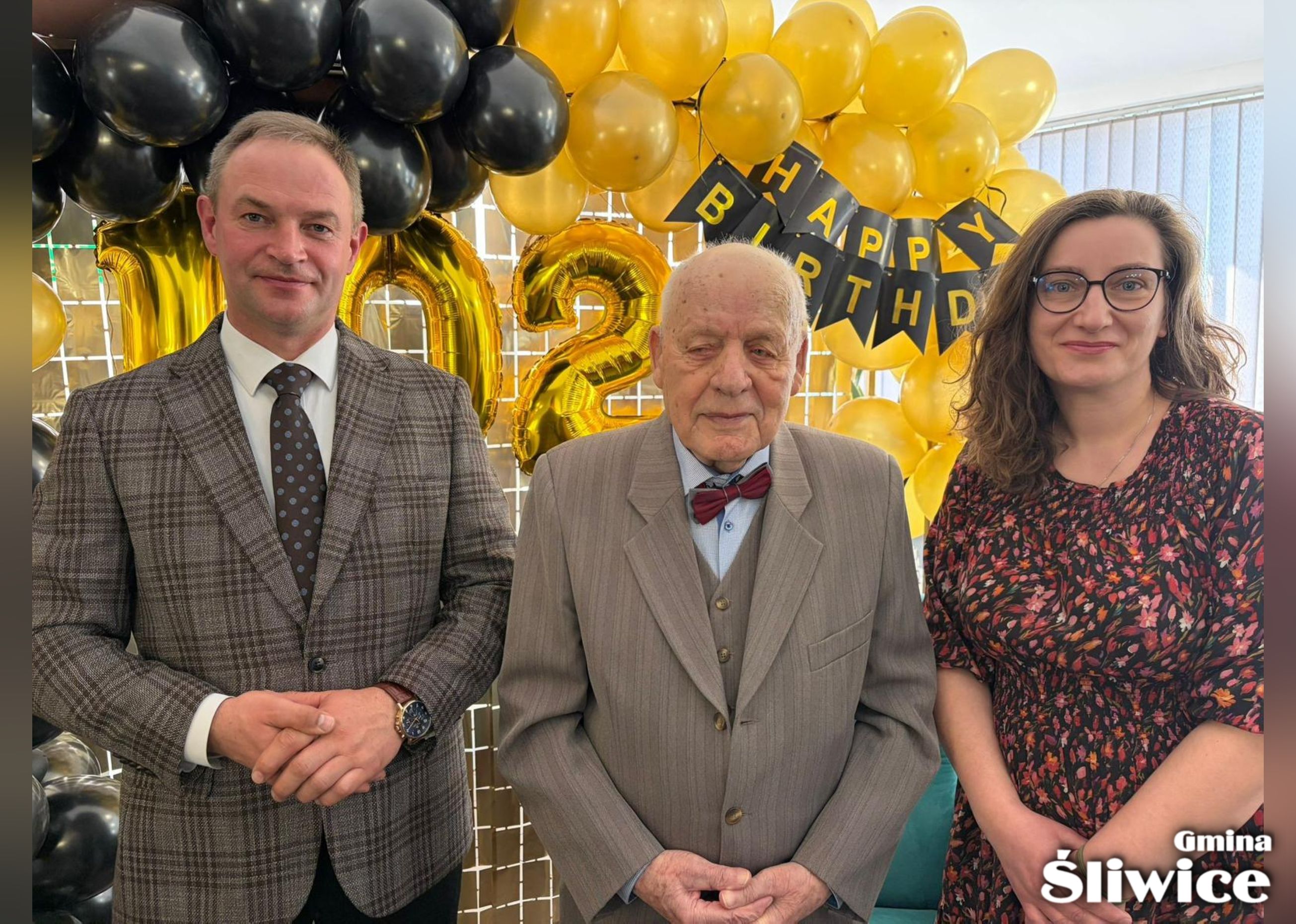 11 kwietnia 2026 r. Pan Leon Nadarzyński ze Śliwic świętował swoje 102. urodziny. Z tej wyjątkowej okazji życzenia Jubilatowi złożyli Wójt Gminy Śliwice Daniel Kożuch oraz Zastępca Kierownika Urzędu Stanu Cywilnego – Anna Pril, przekazując gratulacje oraz życzenia zdrowia, pogody ducha i wielu kolejnych lat w gronie najbliższych.
